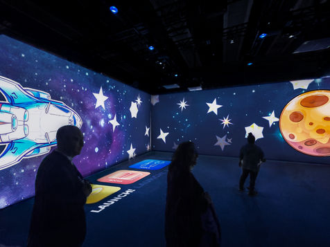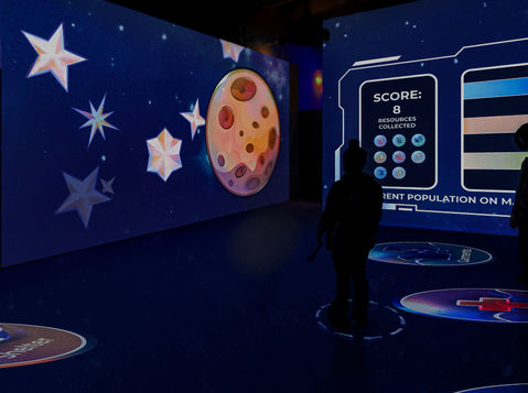 This is a designed interactive immersive space for exploring the possibilities beyond earth. What resources would we need to survive on Mars? What do we consider important to start a civilization? And, what does it mean to be human? The space is designed to create collaboration between people in the space, showing visual data of what collaboration could do for growth.